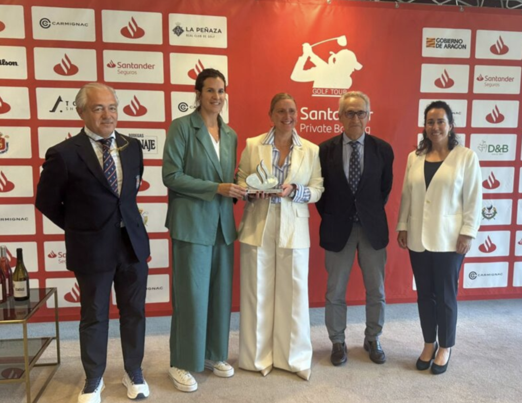 A la presentación han asistido Cristina García Torres, directora general de Deportes del Gobierno de Aragón; Fernando Used, presidente del Real Club de Golf La Peñaza; José María Dehesa, presidente de la Federación Aragonesa de Golf; Gemma Bonet, directora comercial de Santander Private Banking en Aragón, Navarra y La Rioja; y Alicia Garrido, directora del Santander Golf Tour.